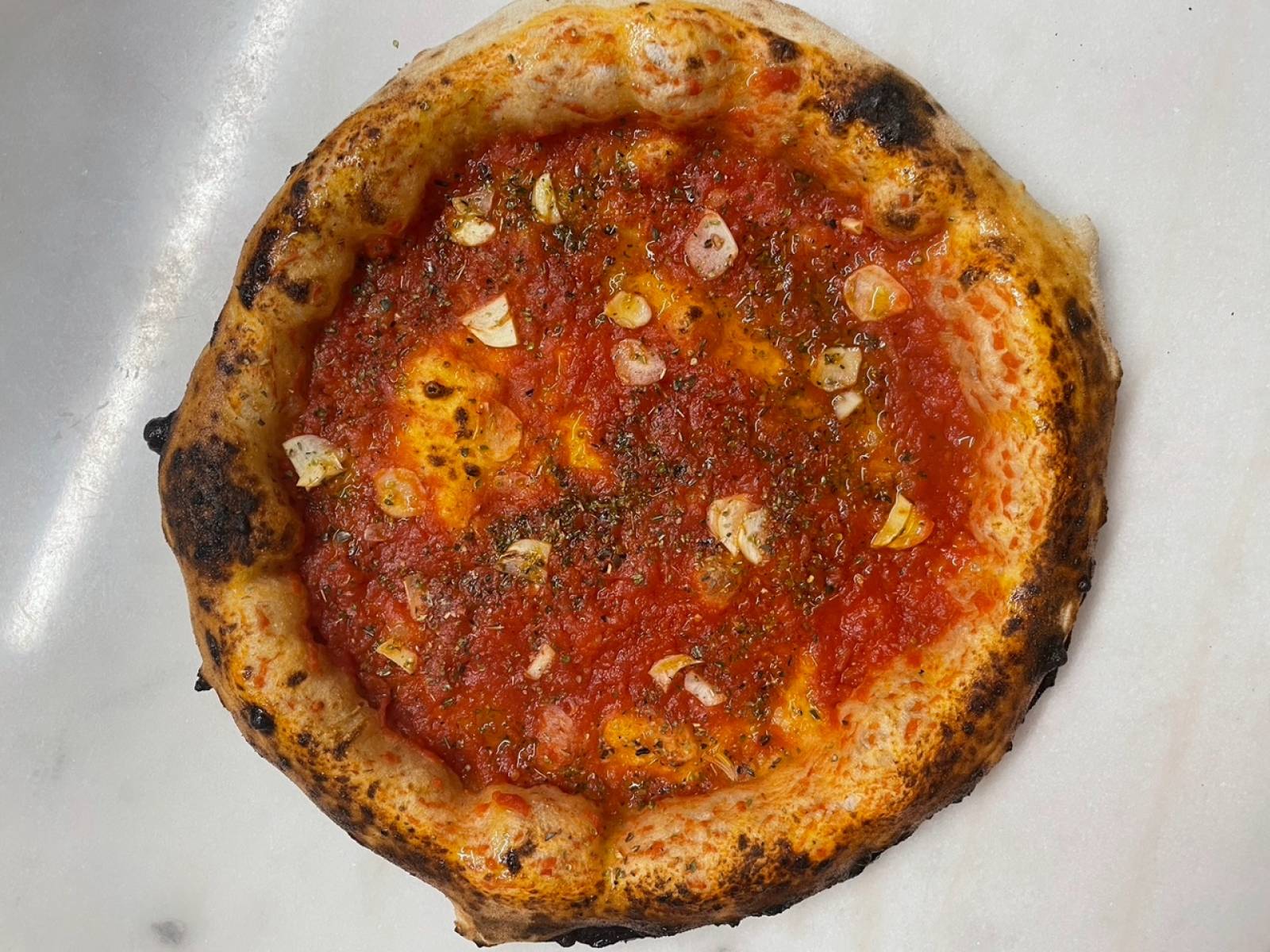 sauce tomate riche et savoureuse. L'ail frais ajoute une note piquante, tandis que l'origan parfume chaque bouchée d'une touche méditerranéenne. Le tout est arrosé par une généreuse dose d'